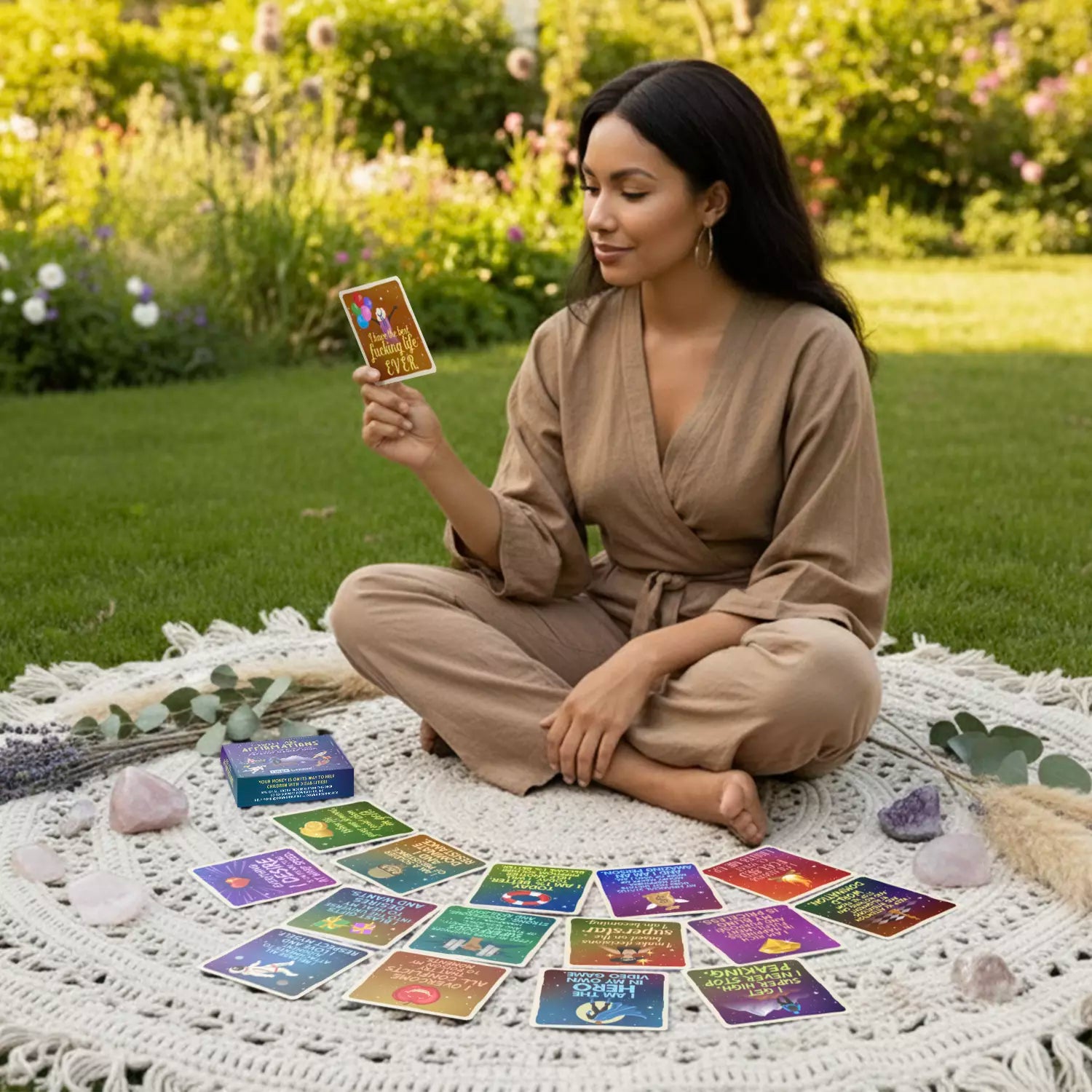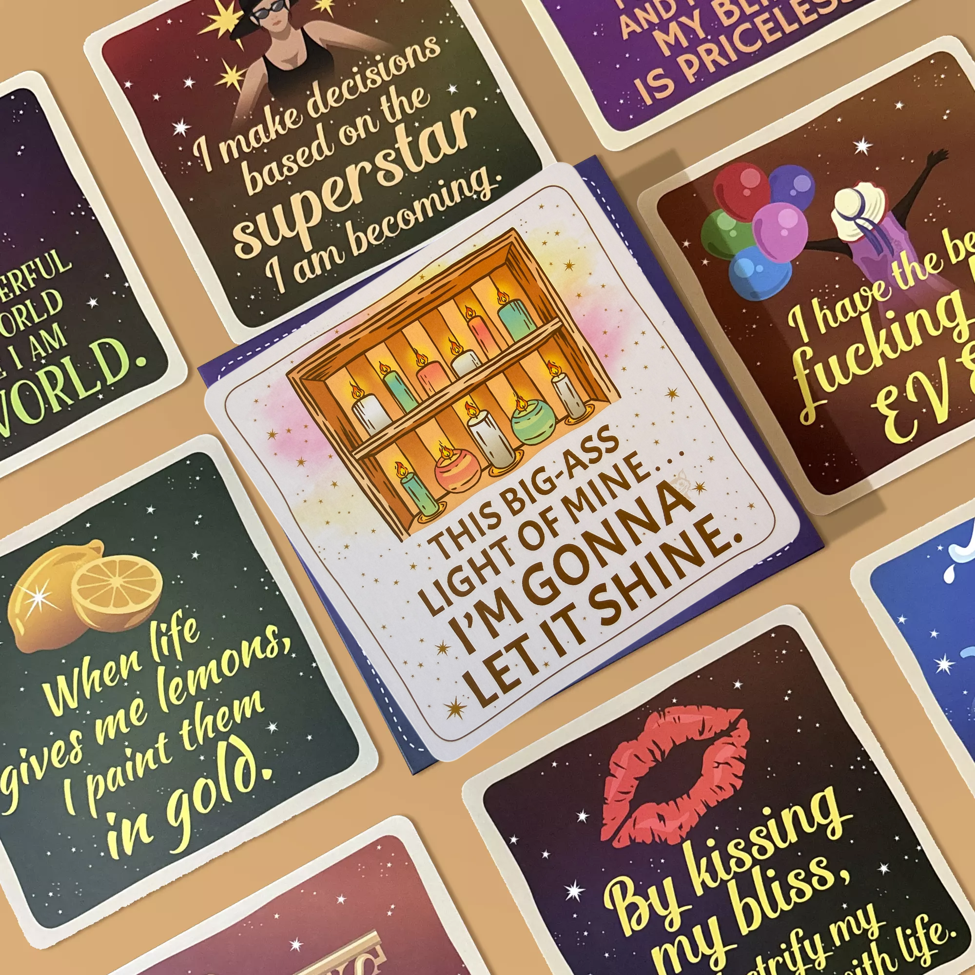 • 60 Potent Affirmation Cards: funny, uncensored, and REAL.
