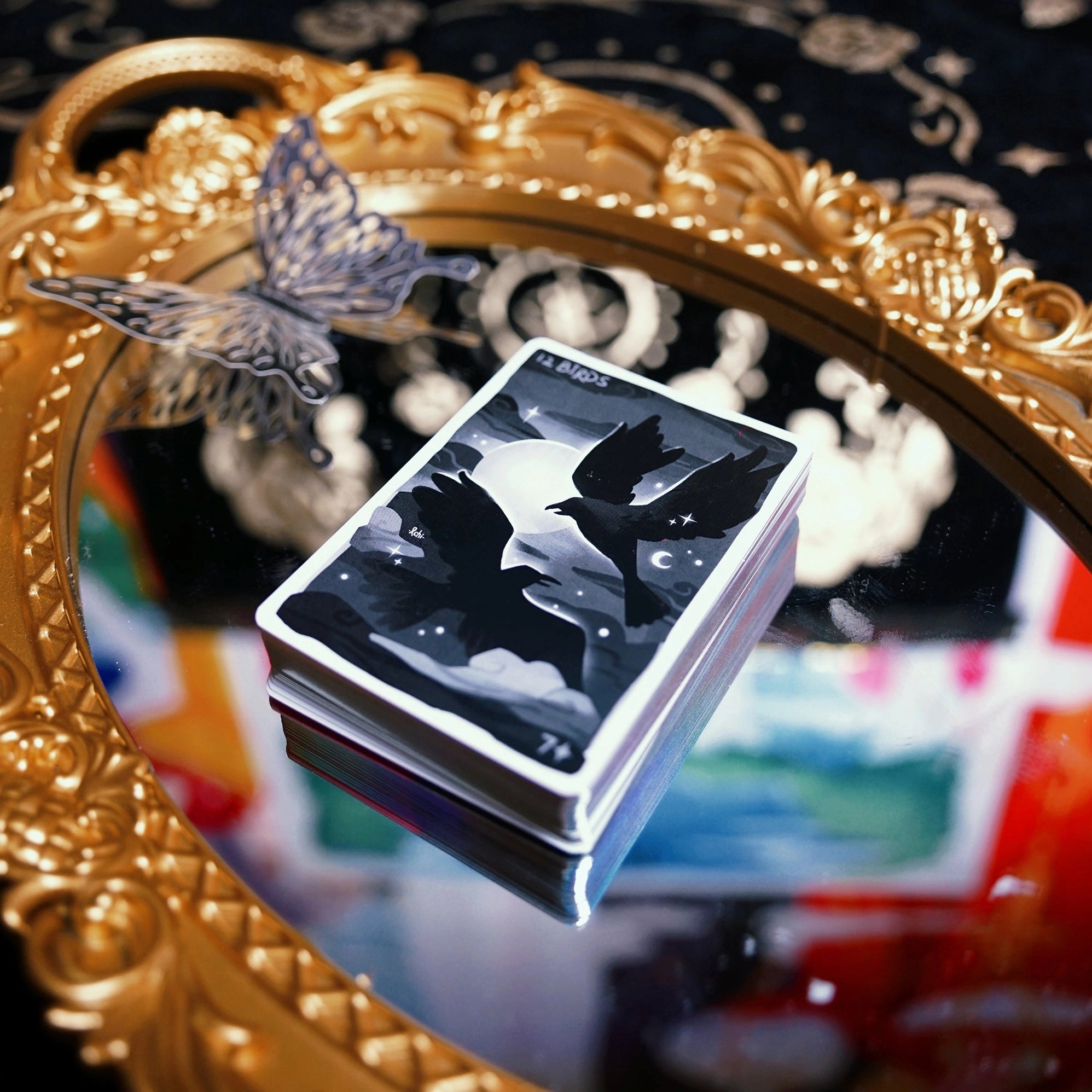 Box Includes: 36 basic Lenormand cards + alternative "Man" & "Woman" + 4 special cards + English guidebook "NIGHTMARE" : metallic hologram edge