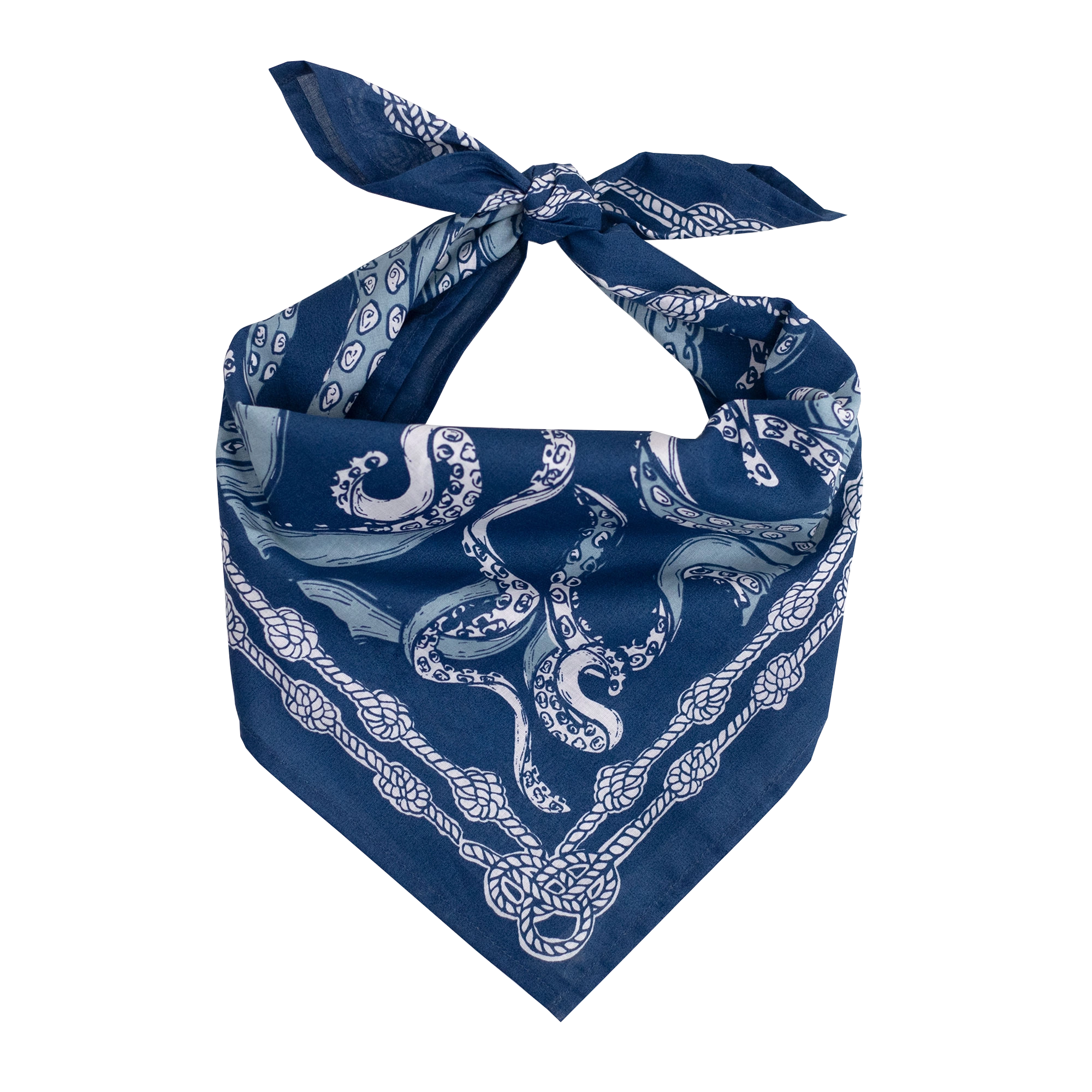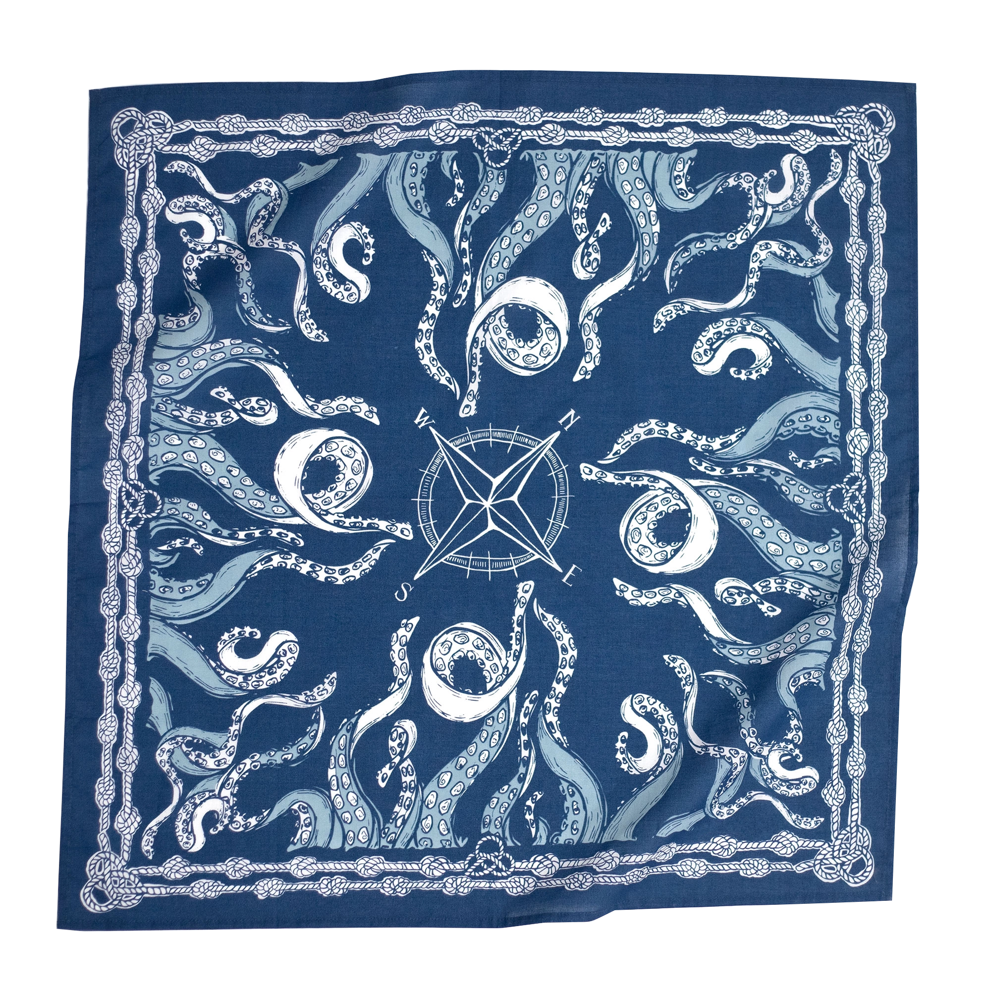 Lightweight and ultra-soft cotton, this bandana-sized reading cloth features a nautical pattern of octopus tentacles and ropes with a prominent compass motif in the center. Great for directional readings, and water themes.