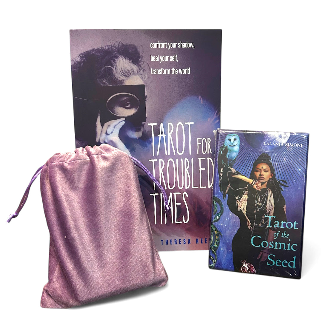 This gift set is designed for the Spiritual Activist on your gift list. With this set, you'll be fully equipped to deep-dive into how to make use of tarot, journaling and meditation to strengthen your resolve and cultivate positive social action.
